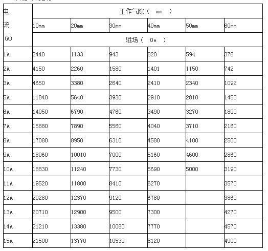 * 剩 磁:≤10mT, 工作氣隙10mm時(shí)