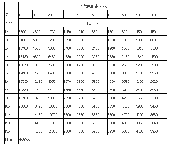 2.6 剩 磁: ≤12mT 工作氣隙10mm時(shí)